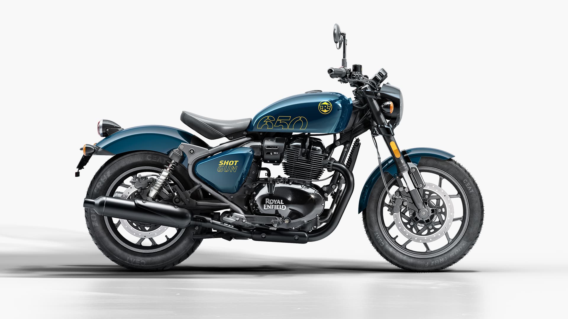 Shotgun 650 to motocykl, który odzwierciedla nasze czyste motocyklowe DNA, ale nie jest przez nie w niczym ograniczany - wykorzystuje swoje modułowe możliwości, neonowoczesną estetykę i wyjątkowe kolory, aby przełamywać formę i przesuwać granice tożsamości Royal Enfield.